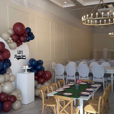 Once you have secured your date and time, you can choose which package you would like! We have a variety of options, from our basic room rental with just table and chairs, to a fully decorated birthday or shower, complete with a backdrop, table runners, faux florals and more!